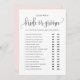 ¿Adivinan quién? ¿Fue la novia o el novio? Añade este juego divertido y lúdico a tu evento. Presenta un guión caprichoso negro, tipografía clásica, fondo rosa rubor. Esta tarjeta de juego de He Said She Said es perfecta para duchas de novias y eventos de boda.