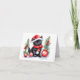 Tarjeta Festiva Adorable gatito negro de Santa con bolas de Navida