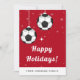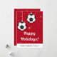 Tarjeta Festiva Adorno de Balón de Fútbol Rojo y Brillante Tema De