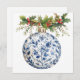 Tarjeta Festiva Adorno de bola de Chinoisserie azul con acebo verd