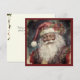 Esta imagen es una tarjeta de Navidad antigua que presenta a un Santa Claus negro de estilo Rococó. La tarjeta muestra a Santa Claus con un abrigo y sombrero rojo ciruela con acentos florales rosados. Los colores de la imagen son principalmente rojo, blanco, rosa con acentos de marrón oscuro. El tema general de la imagen es festivo y tradicional, representando a la figura icónica de Santa Claus durante la temporada de vacaciones.