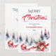 Tarjeta Festiva Adorno navideño clásico de bolas rojas y pinos