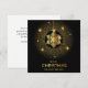 Tarjeta de Feliz Navidad con Adorno Navideño Negro Dorado Saludo Corporativo.
