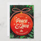El diseño se compone de un adorno de Navidad rojo sobre un fondo oscuro. Agrega el nombre de tu familia, año y mensaje personalizado.