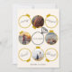 Celebra tu reciente compromiso con un saludo a tus amigos y familiares. Este diseño minimalista y moderno de compromiso navideño presenta adornos dorados con texto o rellenos con tus propias fotos. En la parte posterior hay espacio para un saludo navideño.