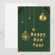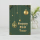 Elegantes adornos de árbol de Navidad que incluyen adornos dorados y decoraciones festivas sobre un fondo verde, creando una atmósfera festiva de vacaciones.