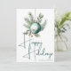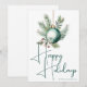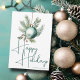 Esta preciosa tarjeta plana de Navidad con tipografía verde presenta una hermosa acuarela de un adorno navideño y hojas de pino sobre elegante escritura a mano que dice Felices Fiestas. Estas tarjetas navideñas modernas sin foto son una opción trendy y chic para una familia elegante.