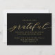 Lecturas de tarjetas de vacaciones de negocios basadas en la caligrafía de escritura moderna y elegante. Estamos muy agradecidos junto a tu mensaje y texto personalizado. En la parte trasera hay espacio para otro mensaje y su logotipo corporativo. Esta es la elegante versión en negro e impreso en oro.
