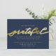 Lecturas de tarjetas de vacaciones de negocios basadas en la caligrafía de escritura moderna y elegante. Estamos muy agradecidos junto a tu mensaje y texto personalizado. En la parte trasera hay espacio para otro mensaje y su logotipo corporativo. Esta es la elegante y rica versión dorada impresa y azul.