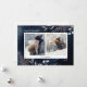 Esta elegante tarjeta de Navidades ofrece 2 fotos acentuadas con follaje navideño gris y marrón sobre un fondo acuático azul marino. El saludo dice "Amor y risas".