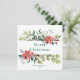 Elegante tarjeta de vacaciones no fotográfica de Season's Greetings. Esta rústica tarjeta de vacaciones acuática presenta hojas verdes de invierno con flores rojas. El texto elegante puede ser completamente personalizado con su elección de saludo, apellido, año y un mensaje personalizado. Transforme sus vacaciones con nuestro impresionante diseño. Difunde alegría y calidez en esta temporada de vacaciones con nuestra hermosa tarjeta acuarela. Es perfecto para enviar tu amor a amigos y familiares. Felices fiestas!