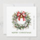 Tarjeta Festiva Agua festiva Holly Berry Pine Wreath