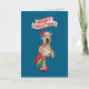 A cute funny Christmas card featuring an Airedale wearing a Santa hat sticking out of a Christmas stocking.