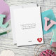 This cute Valentine's Day card features an illustration of a red and white cartoon airplane with propellers. The airplane is flying through a big heart and has a big smile. On the back is a custom Valentine's Day message. Personalize it with your own message or use our default one. Perfect for school friends or grandkids!