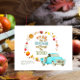 Recuerda a todos tus amigos y familiares la alegría de dar gracias con esta tarjeta que presenta una camioneta vintage de acuarela con un perro y alimentos y símbolos