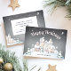 Esta elegante tarjeta de vacaciones presenta una pacífica aldea invernal nevada en una ladera contra un cielo estrellado. Perfecta para amigos, familiares y todos en su lista. La parte delantera de la tarjeta presenta "Felices Fiestas" y su nombre. La parte trasera de la tarjeta presenta su mensaje de vacaciones personalizado. ¡Celebre la temporada con esta elegante tarjeta de vacaciones de Cherry Lane Designs!