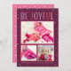 La tarjeta de Navidad moderna y brillante "Alegre" cuenta con un collage de fotos para tres (3) fotos y texto personalizable. Esquema de color rojo borgoña, púrpura lavanda, rosa magenta, rojo coral y rosa claro con puntos blancos nevados.