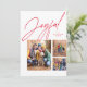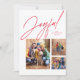 Esta tarjeta de tres Navidades de la familia fotográfica presenta un gran guión moderno "alegre" en rojo encima de un collage de tres fotos. La variedad de formas y tamaños son perfectos para mostrar los momentos más destacados del año o lo mejor de la sesión de fotos de la familia. El rojo festivo se combina en la parte trasera de la tarjeta de vacaciones, que también tiene un divertido patrón de estrellas y puntos blancos. Esta moderna tarjeta fotográfica única de vacaciones seguro que llevará sonrisas a amigos y familiares.