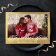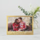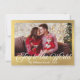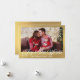 alegría al mundo, foto con escritura moderna y hoja de oro Tarjeta de vacaciones. En el reverso mensaje de vacaciones.