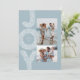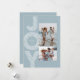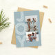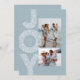 Un remolino festivo JOY enmarca dos fotos en esta tarjeta de Navidad única. Perfecta para enviar saludos navideños a familiares y amigos, cuenta con una foto vertical y una horizontal en un suave fondo azul cielo claro. La parte trasera de la tarjeta es un azul claro moteado que combina con un patrón de nieve blanca. Esta tarjeta está disponible en otros colores y también como descarga digital de tarjeta de Navidad.
