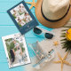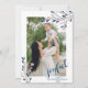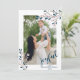 Envía esta hermosa tarjeta de vacaciones para tus amigos y familiares con un marco floral de invierno con una foto, un texto "alegre", nombre de la familia y año, y agrega cuatro fotos con tu mensaje personal en la parte posterior.