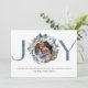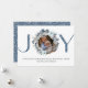 Agradables amigos y familia con esta preciosa tarjeta de vacaciones "JOY" con una exquisita cortina de flores de color acuático, azul rústico y plata cubriendo tu fotografía con la letra "O". El resto de las letras en elegantes damasco decorativo azul y gris plateado con un patrón de remolinos. Hay dos secciones de texto para su propio mensaje y nombre. De vuelta en un elegante patrón de remolino damasco en la misma plata azul y gris de la letra en el frente. Colección con productos de coordinación disponibles.