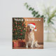 Tarjeta Festiva Alegría navideña con un amigo peludo
