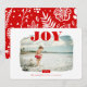 Personalizado económico imprimió tarjetas fotográficas de vacaciones con plantillas sencillas para la personalización. Este diseño moderno de moda tiene un borde abstracto enmarcando tu foto horizontal con texto JOY en un tipo de letra en negrita. Personalízalo con tu apellido y el año. El lado inverso tiene una moderna huella botánica o usa el espacio para fotos y textos adicionales. Utilice las herramientas de diseño para editar el texto, añadir más fotos y crear un diseño de tarjeta de fotos navideña de tipo único.