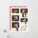 La alegría roja moderna, la tarjeta de Navidades de collage con copos de nieve. La parte trasera incluye un patrón con copos de nieve rojos y blancos. Fotografía © Storytree Studios, Stanford, CA