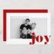 Feliz Navidad | Invite a los invitados a su evento con esta tarjeta de Navidades de personalizable. Presenta JOY en tipografía audaz. Personalice esta moderna tarjeta de vacaciones añadiendo sus detalles. Esta tarjeta de Navidades de fotografía personalizado está disponible en otros colores y material de cartón. Los elementos coincidentes están disponibles.
