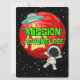 TARJETA FESTIVA ALIEN, UNIVERSO, COHETE ESPACIAL, PLANETA Y ASTRON