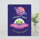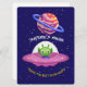 TARJETA FESTIVA ALIENÍGENA, UNIVERSO, COHETE ESPACIAL, PLANETA Y A