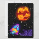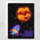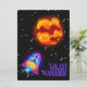 TARJETA FESTIVA ALIENÍGENA, UNIVERSO, COHETE ESPACIAL, PLANETA Y A