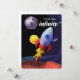 TARJETA FESTIVA ALIENÍGENA, UNIVERSO, COHETE ESPACIAL, PLANETA Y A
