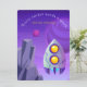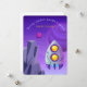 TARJETA FESTIVA ALIENÍGENA, UNIVERSO, COHETE ESPACIAL, PLANETA Y A