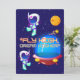 TARJETA FESTIVA ALIENÍGENA, UNIVERSO, COHETE ESPACIAL, PLANETA Y A