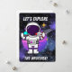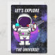 TARJETA FESTIVA ALIENÍGENA, UNIVERSO, COHETE ESPACIAL, PLANETA Y A