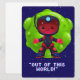 TARJETA FESTIVA ALIENÍGENA, UNIVERSO, COHETE ESPACIAL, PLANETA Y A