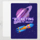 TARJETA FESTIVA ALIENÍGENA, UNIVERSO, COHETE ESPACIAL, PLANETA Y A
