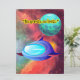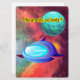TARJETA FESTIVA ALIENÍGENA, UNIVERSO, COHETE, PLANETA Y ASTRONAUTA