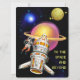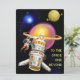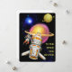 TARJETA FESTIVA ALIENÍGENA, UNIVERSO, COHETE, PLANETA Y ASTRONAUTA