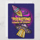 TARJETA FESTIVA ALIENÍGENA, UNIVERSO, COHETE, PLANETA Y ASTRONAUTA