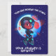 TARJETA FESTIVA ALIENÍGENA, UNIVERSO, COHETE, PLANETA Y ASTRONAUTA