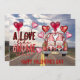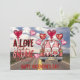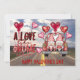 Ama Como Gnome Otro Tarjeta Plana del Día de San Valentín. Una linda pareja de gnomos sentados en la parte trasera de un camión en la carretera. Globos y una divertida cita con juego de palabras. Una cita con juego de palabras en la parte trasera de la tarjeta que puedes personalizar con tu mensaje. Comparte esto con el que amas, tu familia, amigos o niños en el aula.