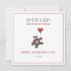 Un oso invernal dulce y simple entrega un globo con forma de corazón a su ser querido. Tarjeta adorable para enviar a seres queridos y amigos este día de San Valentín para que sepan lo afortunado que te sientes de tenerlos en tu vida.