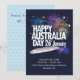 Tarjeta de Invitación de Vacaciones Diseño Moderno. Colección "ME ENCANTA AUSTRALIA". Letra "¡ALEGRÍA! ¡AMOR! ¡PAZ!" y "Feliz Día de Australia 26 de Enero". Bandera de Australia, Mapa de Australia, Corazón, estrellas y fuegos artificiales. Divertida Australia, Cartel Festivo Patriótico Nacional para diseño de regalos y ropa. Invitaciones y Papelería > Tarjetas de Felicitación > Vacaciones y Temporadas. Decoración de Evento de Festival. Viaje, Viajar, Buen Viaje, Fiesta en la Playa, Cumpleaños. Diseño con plantilla de texto. Personalízalas agregando nombre o texto de deseos. 2025
