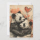 "Envía un mensaje eterno de amor con nuestra tarjeta vintage del Día de San Valentín que presenta dos adorables pandas rodeados de una lluvia de corazones. Esta encantadora ilustración captura la esencia del romance y el afecto duradero. Comparte la alegría del amor con esta tarjeta inspirada en el estilo vintage, donde los pandas entrañables y los motivos de corazones crean una expresión encantadora y sentimental para esa persona especial. Celebra la dulzura del amor con esta tarjeta creada de manera única que se erige como un símbolo nostálgico de emociones sinceras."