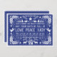 Tarjeta Festiva Amor, paz, alegría Navidades azules de picado