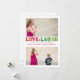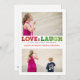Muestra dos de tus fotos favoritas con esta simple tarjeta de PiPo Press. Diseñado con un divertido tipo de tiza escrita a mano en diferentes tonos de rojo y verde, envía un inspirado mensaje de "Amor y risa". Desee a sus amigos y a sus familiares felices fiestas de esta temporada con pensamientos de risas y amor.