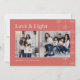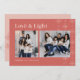 Un diseño moderno y festivo para tus saludos de vacaciones con dos fotos alineadas una al lado de la otra, en un fondo de terracota desértico de tendencia, adornado con guirnaldas de copos de nieve a lo largo del lado derecho. "Amor y Luz" aparece al otro lado de la parte superior en letras retro, con el nombre de tu familia y el año a lo largo de la parte inferior. Un diseño moderno y llamativo de tarjetas de vacaciones para Hanukkah 2021.
